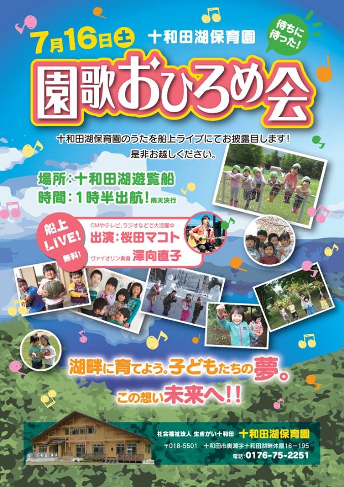 「十和田湖保育園のうた」お披露目の記念に、本日13時30分より十和田湖休屋から出航の遊覧船で船上コンサートを無料開催します〜♪夜は湖畔で花火大会もあるよ〜♪みんな集まれ〜♪( ´▽`) https://t.co/wQopBY0yD7